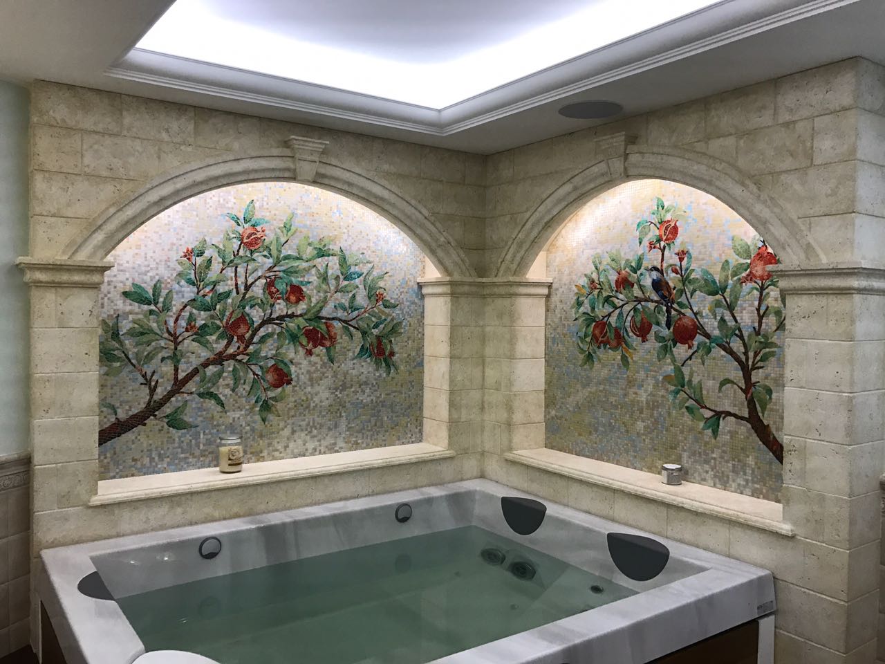 Мозаичные панно из стеклянной мозаики в хамам