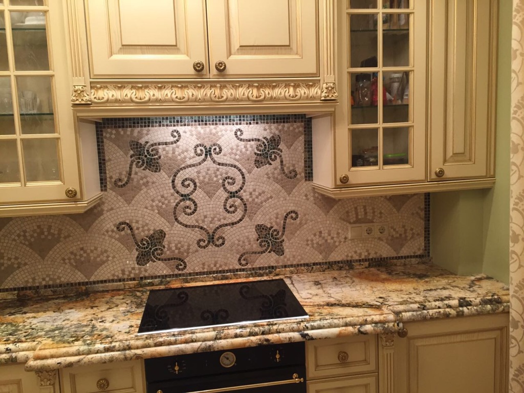 Мозаичный фартук на кухню из натурального камня