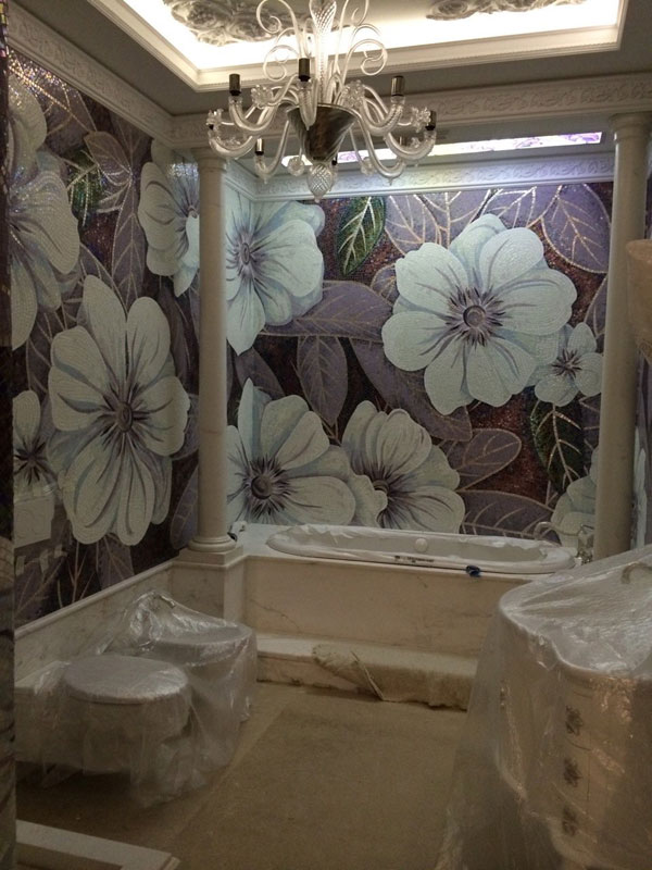Мозаичное панно из стеклянной мозаики в ванную комнату