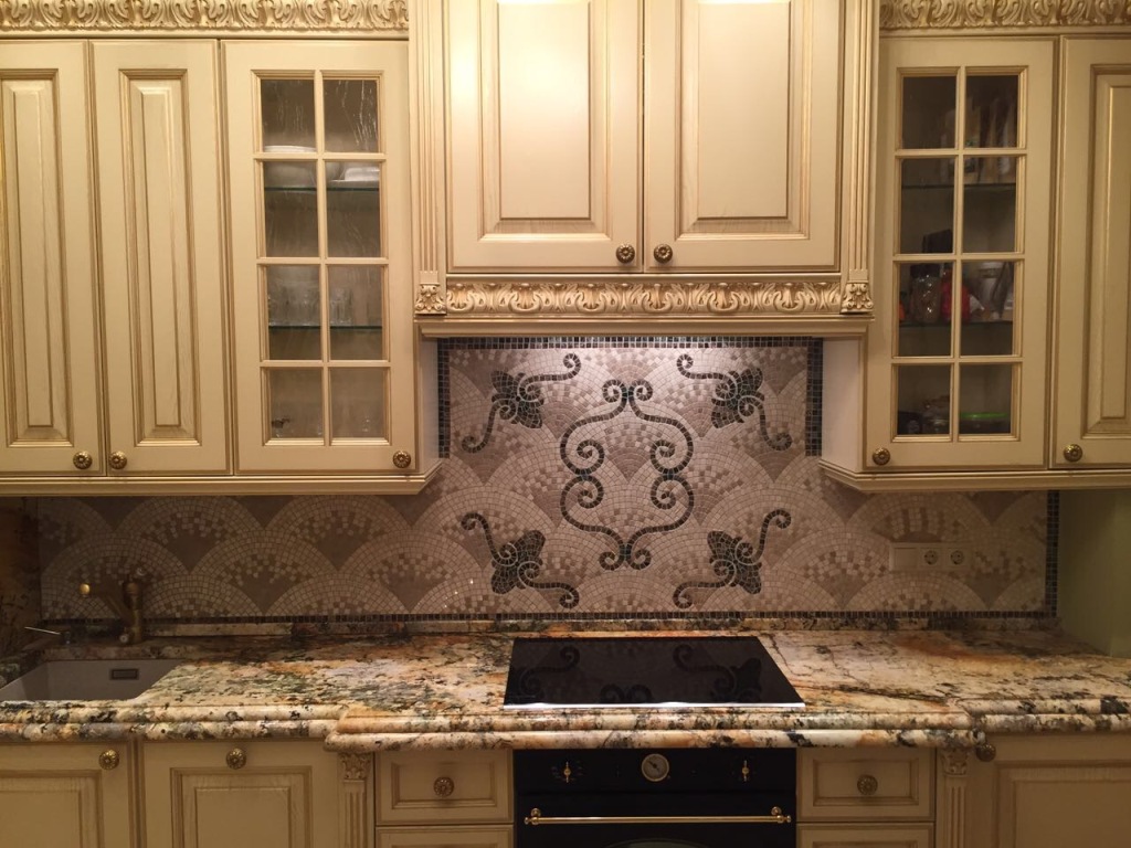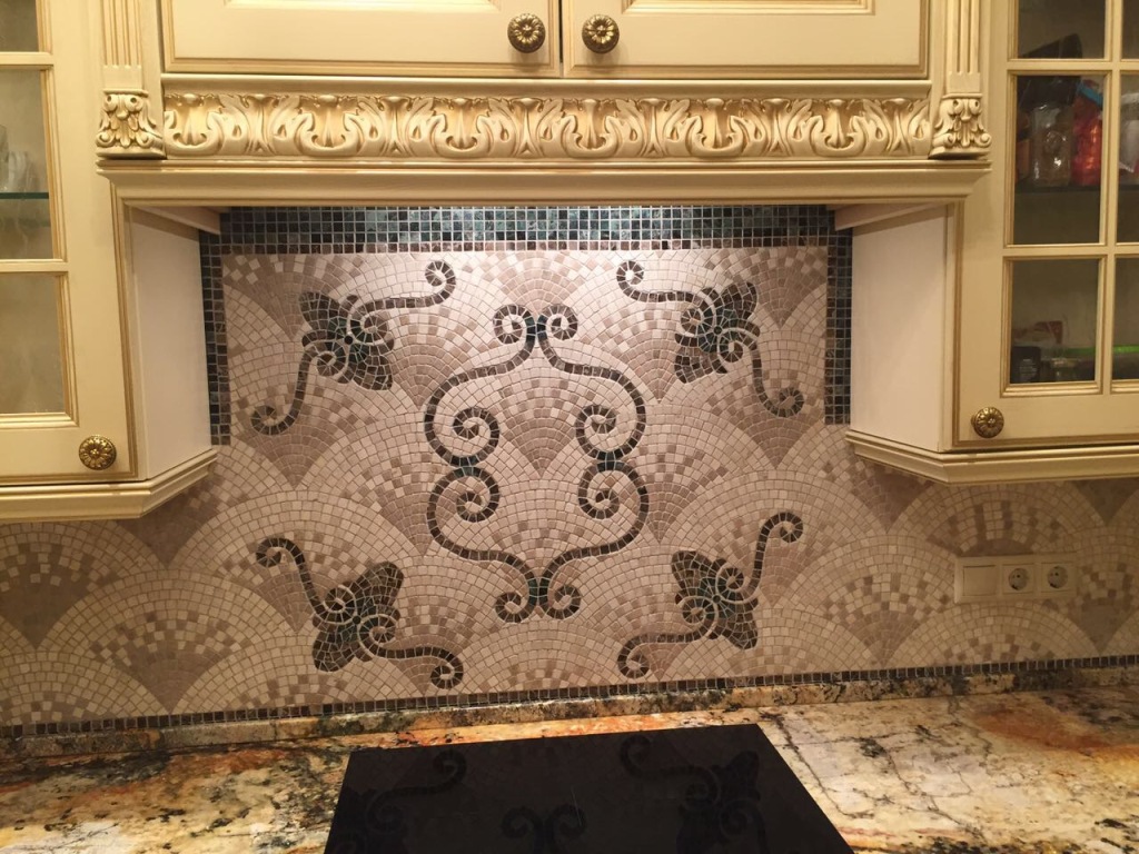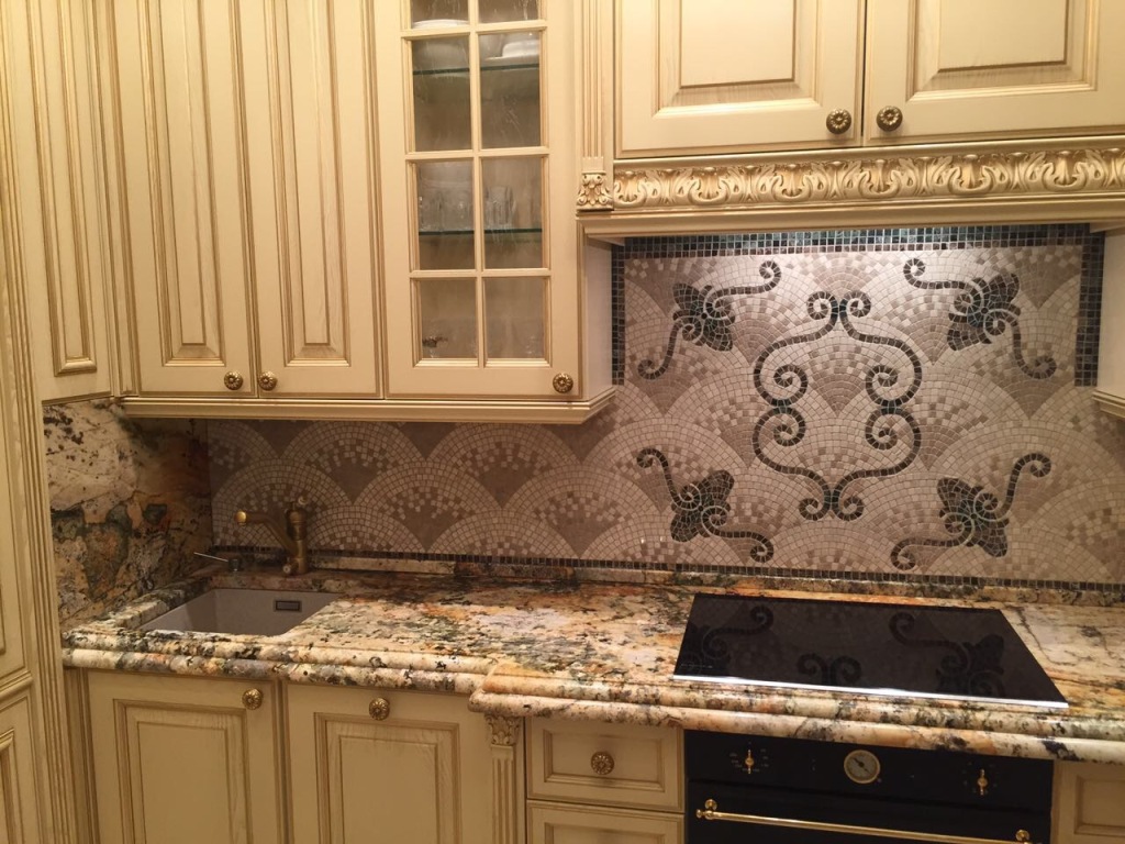 Мозаичный фартук на кухню из натурального камня