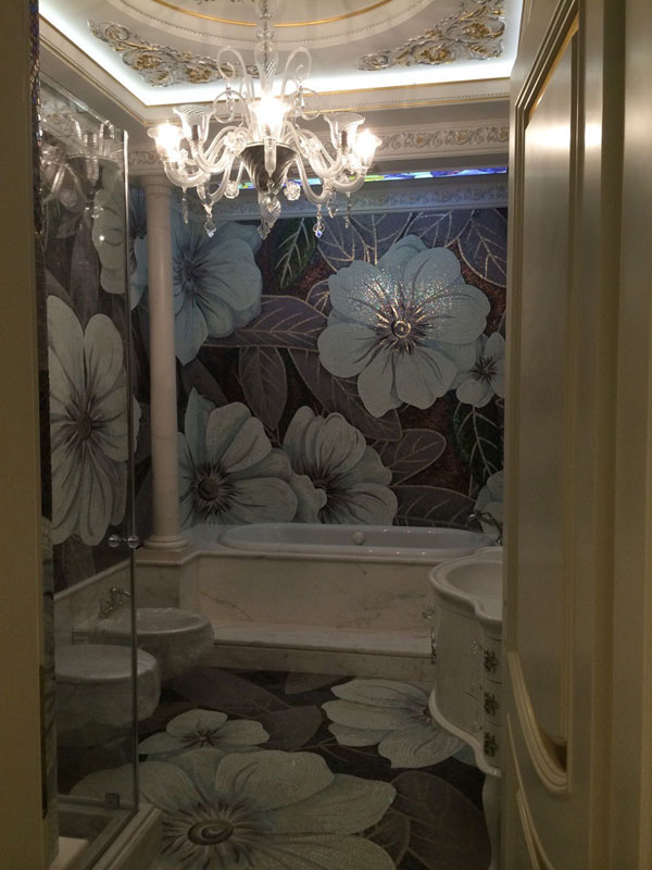 Мозаичное панно из стеклянной мозаики в ванную комнату
