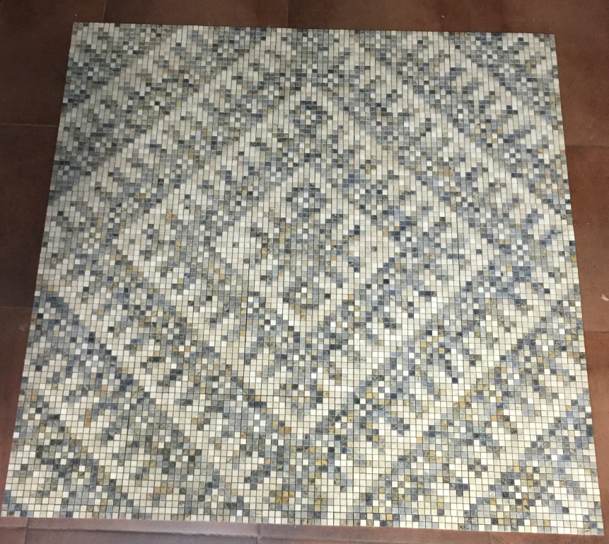Мозаичное напольное панно из мраморной мозаики , размер чипа 15*15 мм. Размер готового изделия 2000*2000 мм .